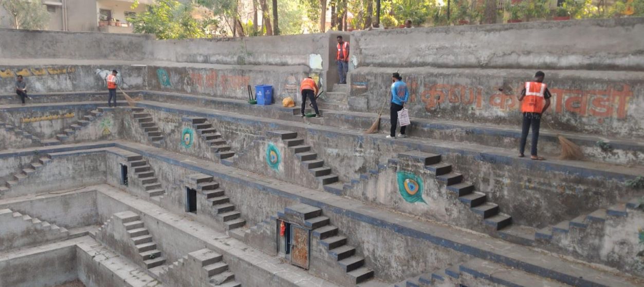 जल गंगा संवर्धन अभियान अंतर्गत जिला चिकित्सालय की बावड़ी की हुई साफ-सफाई